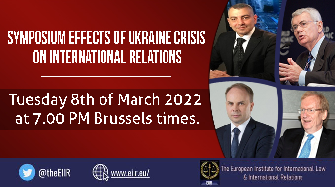 The European Institute for International Law is to organize a symposium on Zoom with subject: Effects of Ukraine Crisis on International Relations, the Tuesday 8th of March 2022 at 7.00 PM Brussels times, 1.00 PM New York time.